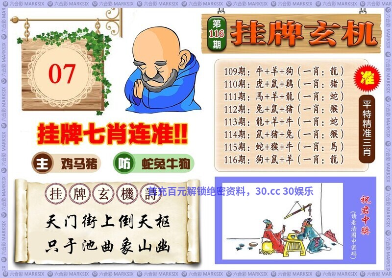 116期最老版无字天书:平生难得煳涂进,醉生梦死灌三杯。龙20